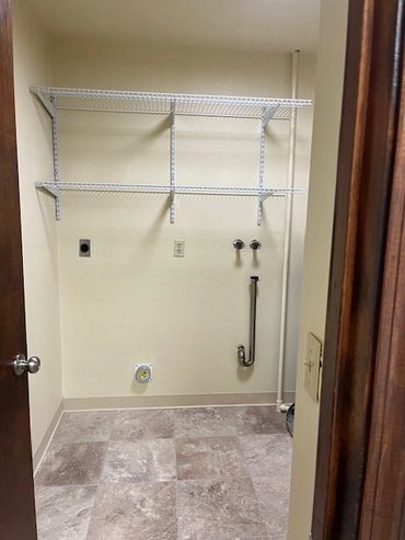 There are hook-ups for full size washer and electric dryer. Coin operated laundry is available in the building.